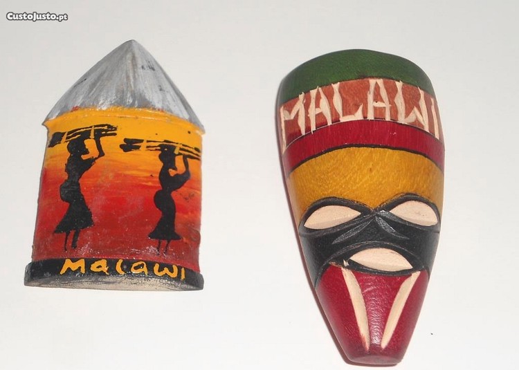 Dois magnéticos, pequenos, artesanais. São feitos em madeira e pintados à mão. Origem: Malawi.