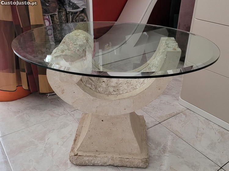 Preço: 224 €Mesa Centro Abstrata Pedra com Tampo Vidro