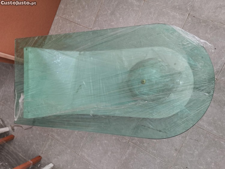 Mesa de centro com design moderno e acabamento brilhante.