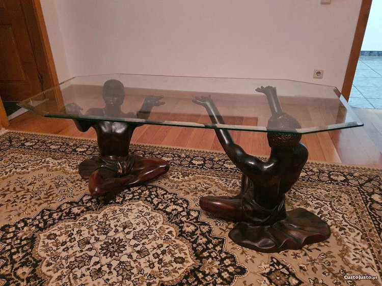 Mesa de centro de madeira e vidro biselado, artigo muito bonito.