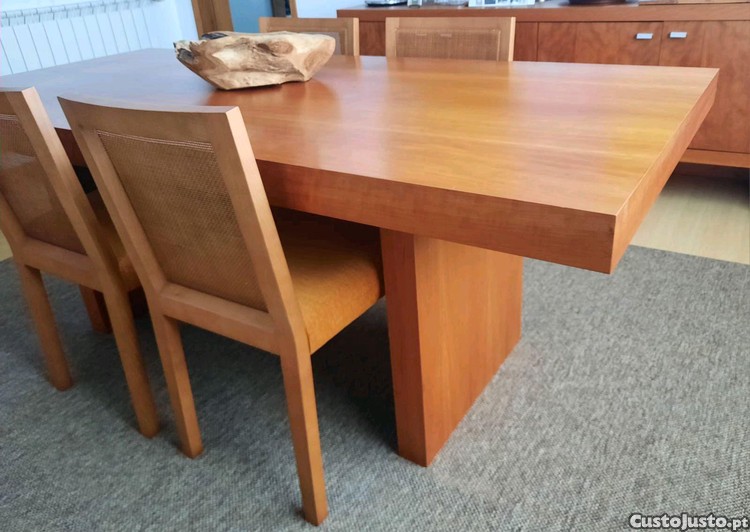 Preço: 700 €Mesa de madeira e cadeiras almofadadas