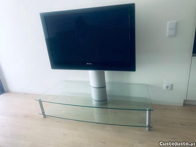 Vendo mesa en vidro e aluminium para TV pode virar para a direita e esquerda