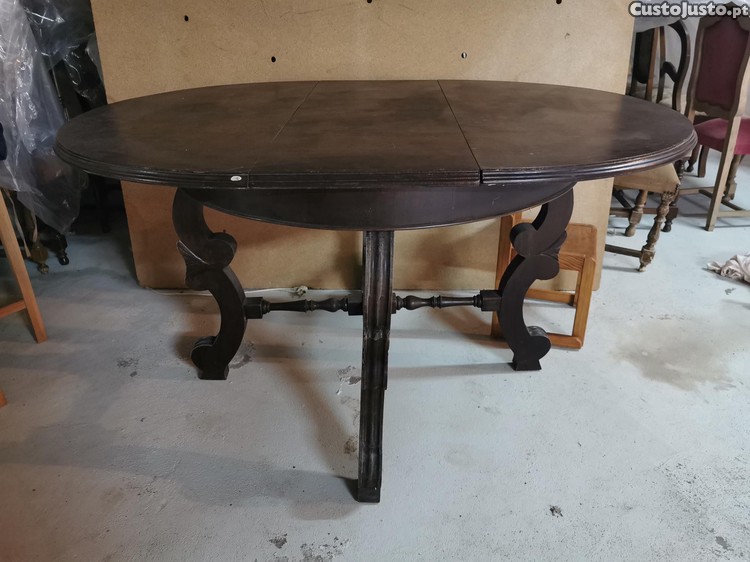 Mesa de jantar extensível em madeira, com um acabamento escuro que confere elegância a qualquer espaço, a um preço negociável.