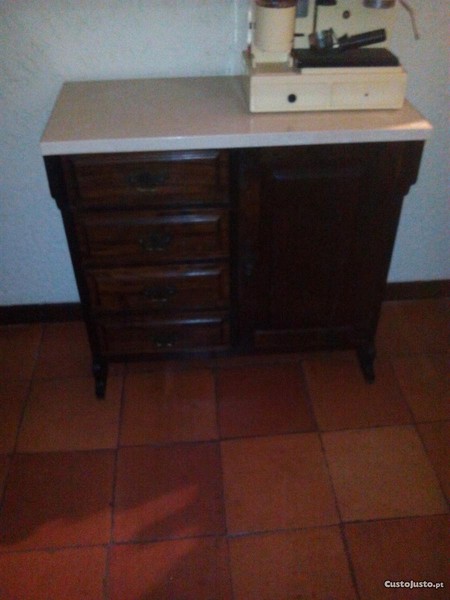 Móvel de apoio ao bar com 4 gavetas e 1 porta, tampo em pedra mármore