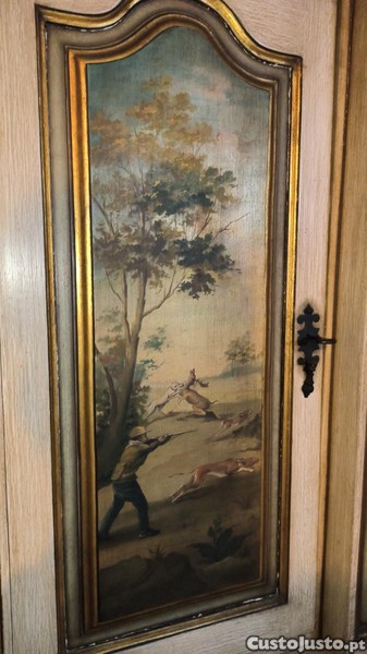 Móvel de sala vintage, pintado à mão com o tema de caça.