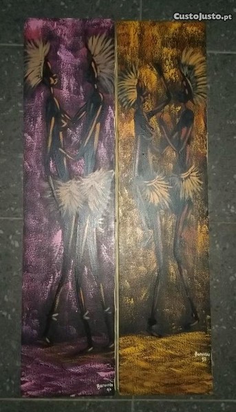 Preço: 75 €Par de Telas/Quadros Africanos Pintura a óleo