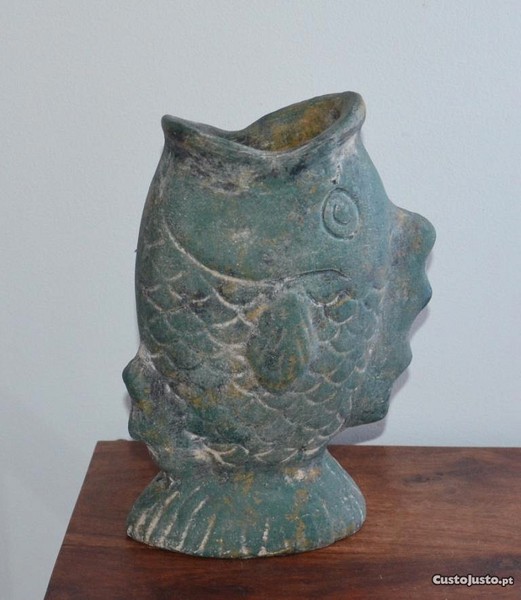 Peixe em terracota, concebido para ser usado como floreira, mas que também pode ser usado como mero objecto de decoração.
