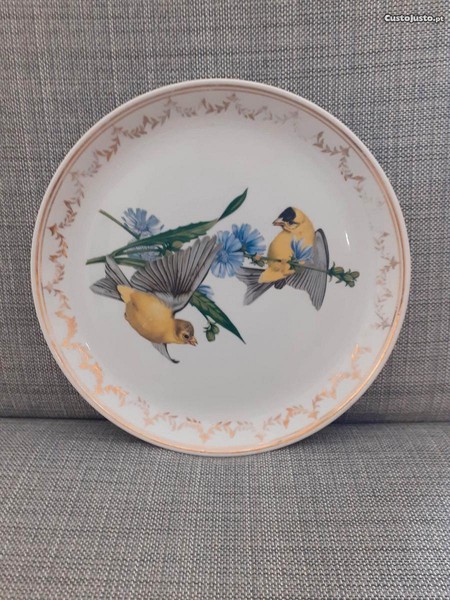 -Prato em porcelana da Artibus decorado ao centro com pássaros e no rebordo com cercadura. Peça marcada.