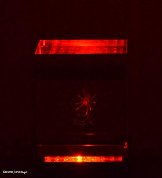 Prisma em Cristal de refinada qualidade, com gravação a laser de teia de aranha no seu interior. Não se trata de uma das muitas imitações de má qualidade que existem no mercado, mas sim de um produto de fabrico alemão.