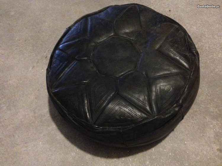 Puff em Pele Preta Feito a Mão Usado Original "Made in Tunísia".
