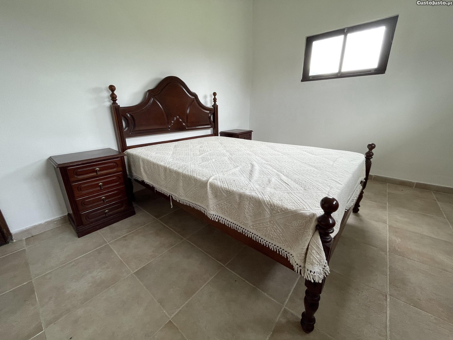 Vende-se conjunto de quarto completo em estilo antigo, composto por um roupeiro espaçoso, uma cama de casal com colchão incluído (dimensões da cama: 190x140 cm) e duas mesas de cabeceira. Mobiliário em madeira maciça, com detalhes clássicos e acabamento de época. Peças elegantes, resistentes e bem conservadas, ideais para quem aprecia móveis vintage ou pretende criar um ambiente tradicional.