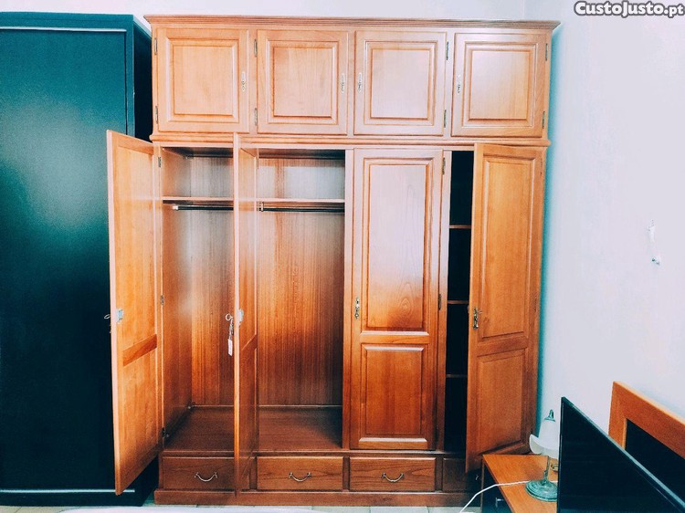 Roupeiro NOVO, em madeira maciça de castanho, com 8 portas.