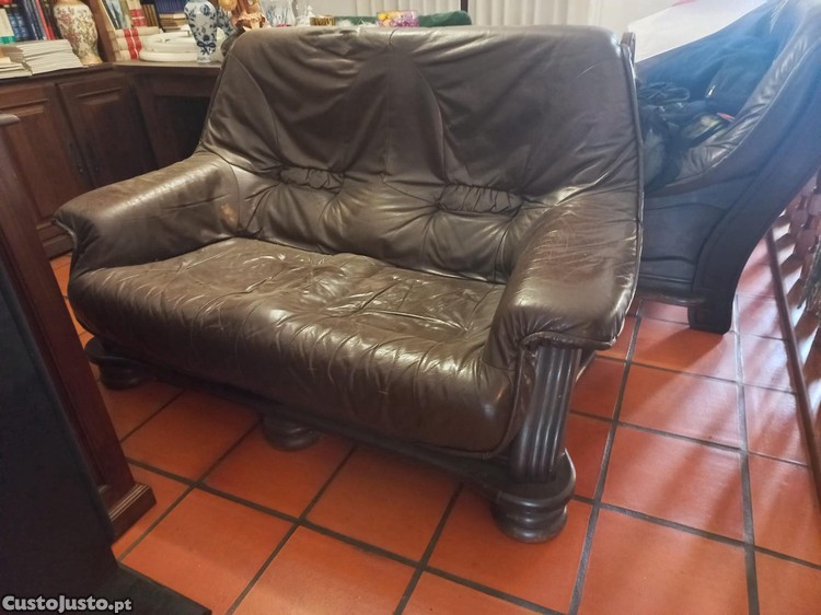 Vendo 2 sofás vintage de excelente qualidade, em pele e madeira, um de dois lugares e um de três, para mais informações disponha!