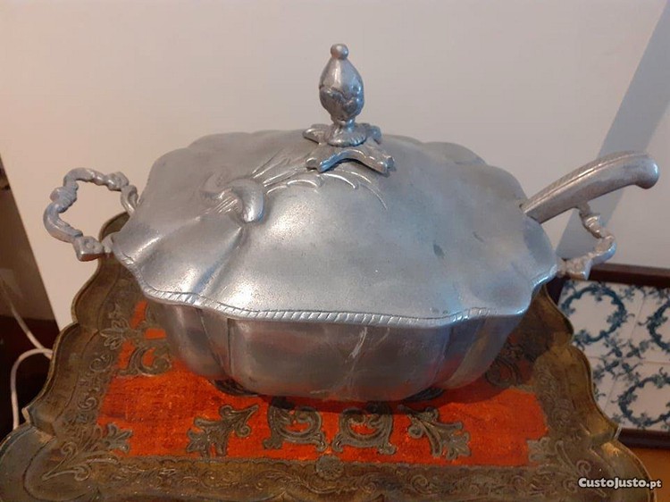 -Terrina com concha em ferro fundido decorado em relevo na tampa e pegas.