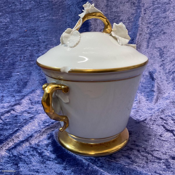 Preço: 50 €Vista alegre taça com tampa branco gold ,alt,19 cm