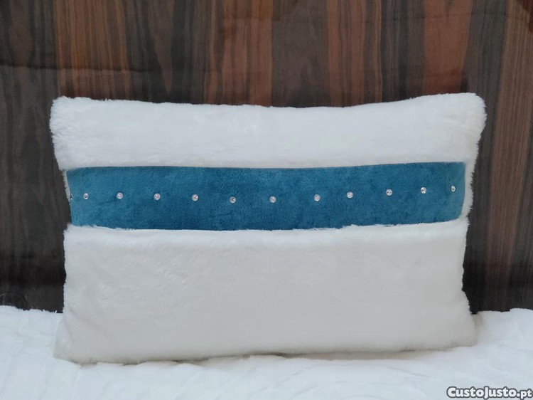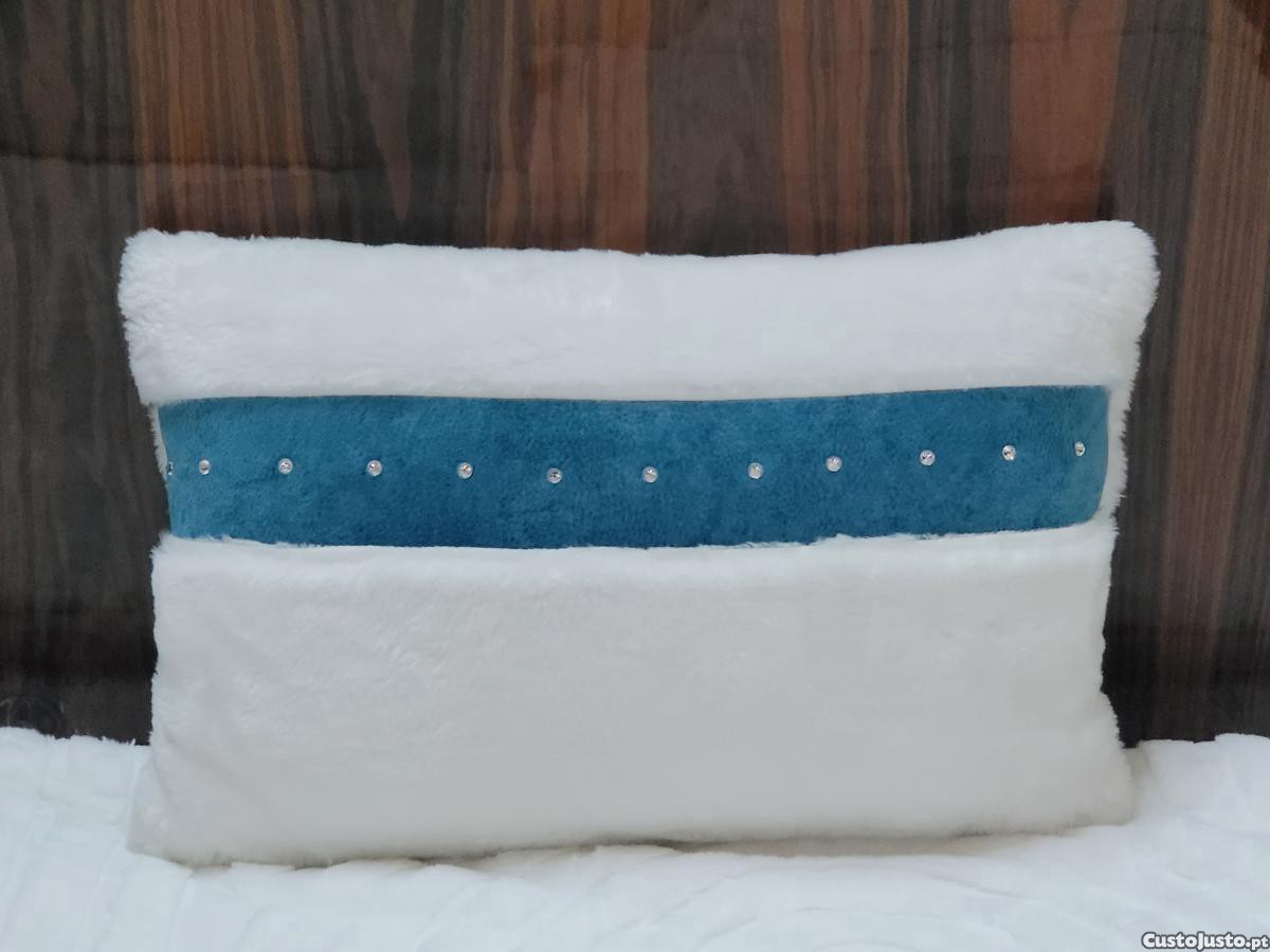 Preço: 59 €Almofada Pêlo Branco com Missangas em Rebordo Azul