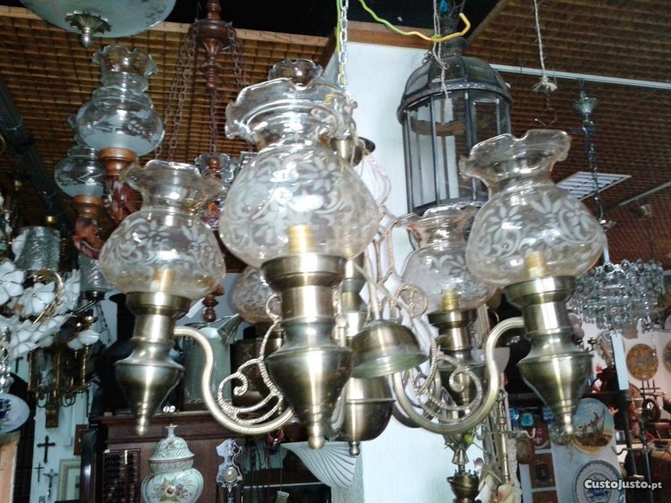 Preço: 75 €Candeeiro 5 Velas 5 Abajures de Vidro