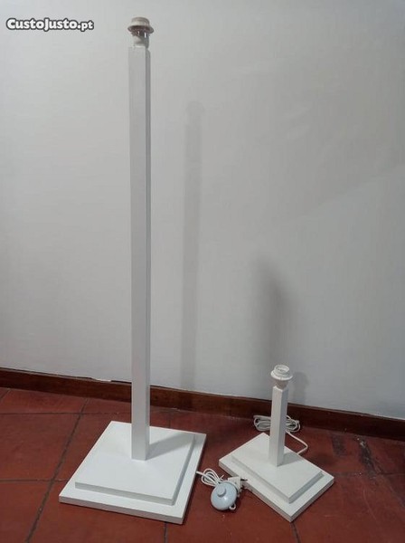 Vendo dois candeeiros de madeira maciça pintados à mão de branco, portanto de forma artesanal. Estão totalmente eletrificados, prontos a utilizar, colocando apenas a lâmpada!