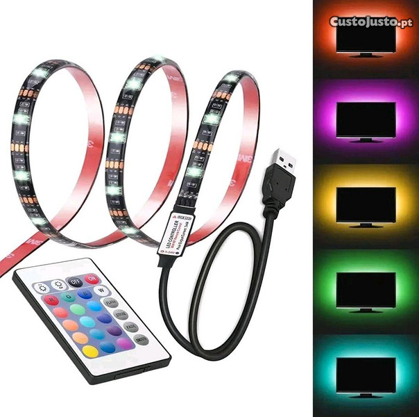 Fita LED com Comando e Entrada USB - Várias Cores - 3 Metros - NOVA