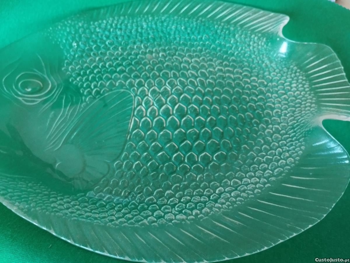 Travessa modelo de peixe em vidro toda em relevo