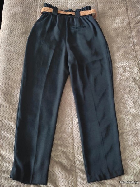 Calças formais da Zara, cintura subida, tecido acetinado com cinto.