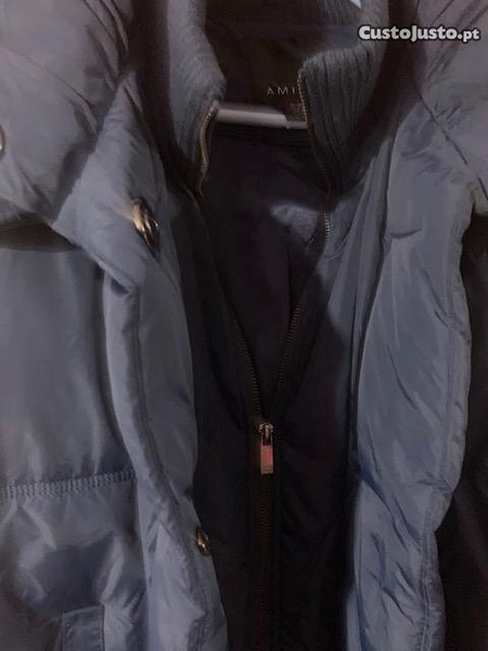 Kispo, tamanho 38, com capuz com pêlo amovível, com duplo interior com gola em malha, com fecho e molas interiores, bolsos laterais.