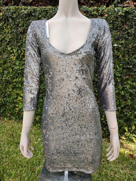 Vendo vestido com lantejoulas de manga comprida, ainda com etiqueta, muito bonito.