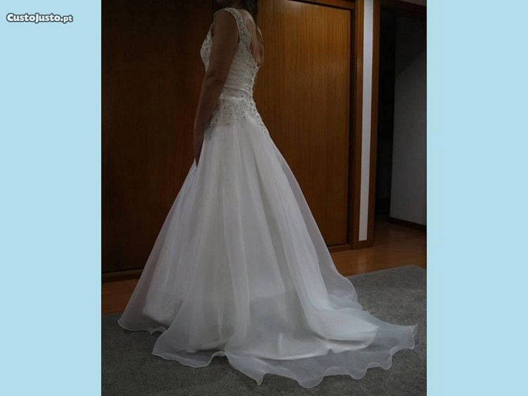Preço: 150 €Vestido de Noiva Drapeado cintado com brilhantes