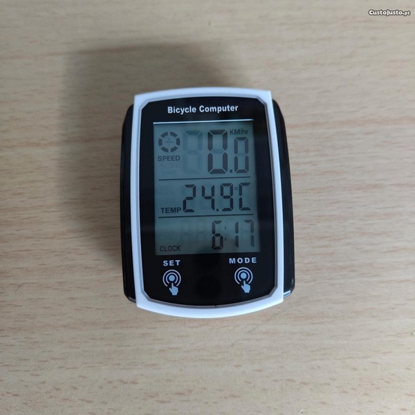 -19 funções: velocidade atual/máxima/média, odômetro, distância de viagem, tempo decorrido, calorias, temperatura, varredura, relógio e muito mais.