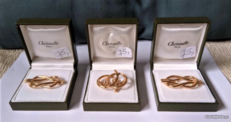 Belos anéis de lenço em banho de ouro da prestigiada Christofle, para manter o lenço unido.