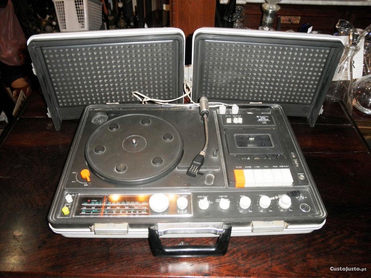 Rádio, giradiscos e leitor/gravador de cassetes.