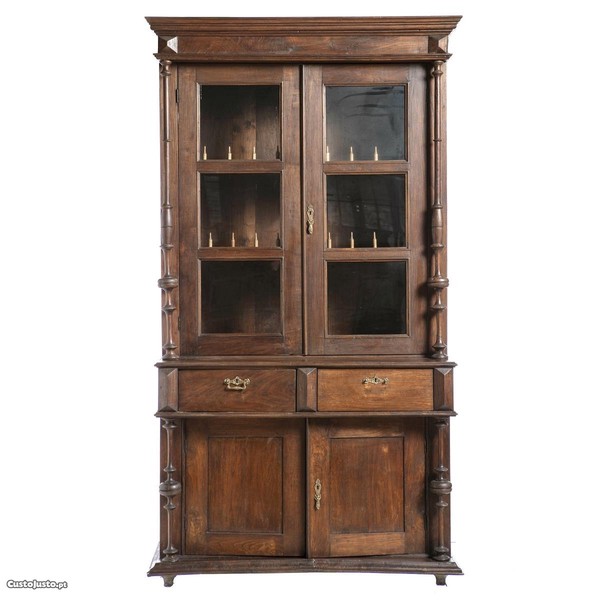 Armário louceiro romântico, português, do século XIX em madeira de castanho.