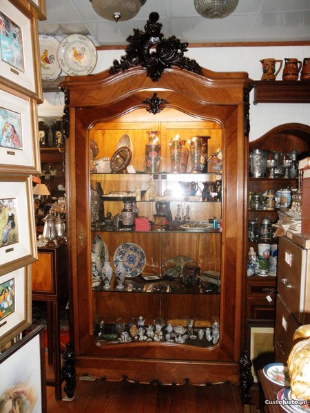 Belíssimo e elegante armário vitrine em madeira de nogueira e pau santo com 3 prateleiras em vidro.