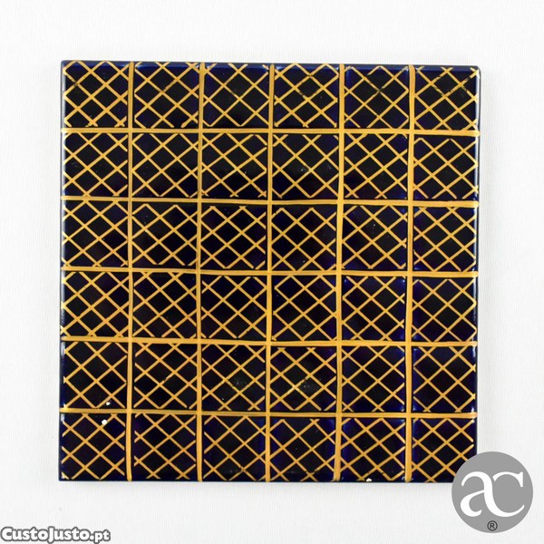 Azulejo da fábrica ARTIBUS, com desenho de losangos em dourado e Azul-cobalto