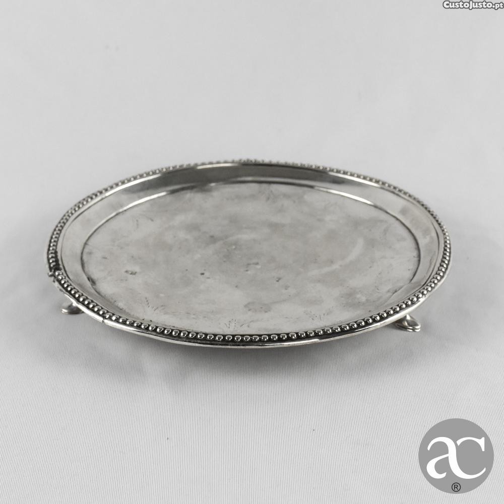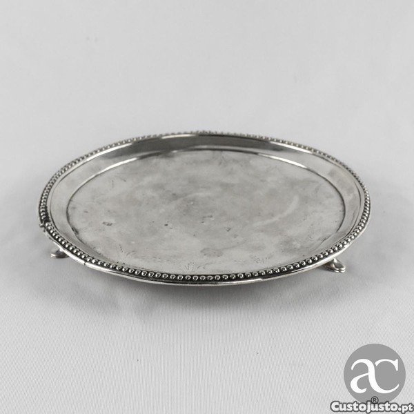 Bilheteira com 3 pés em prata portuguesa Porto Coroa cinzelada e perlados, séc. XIX
