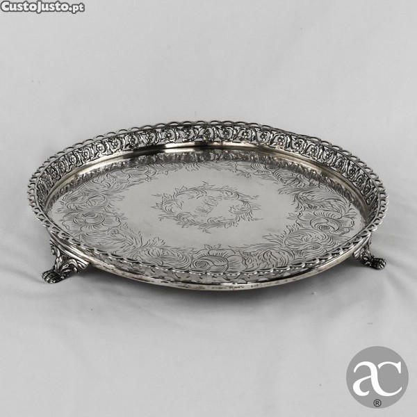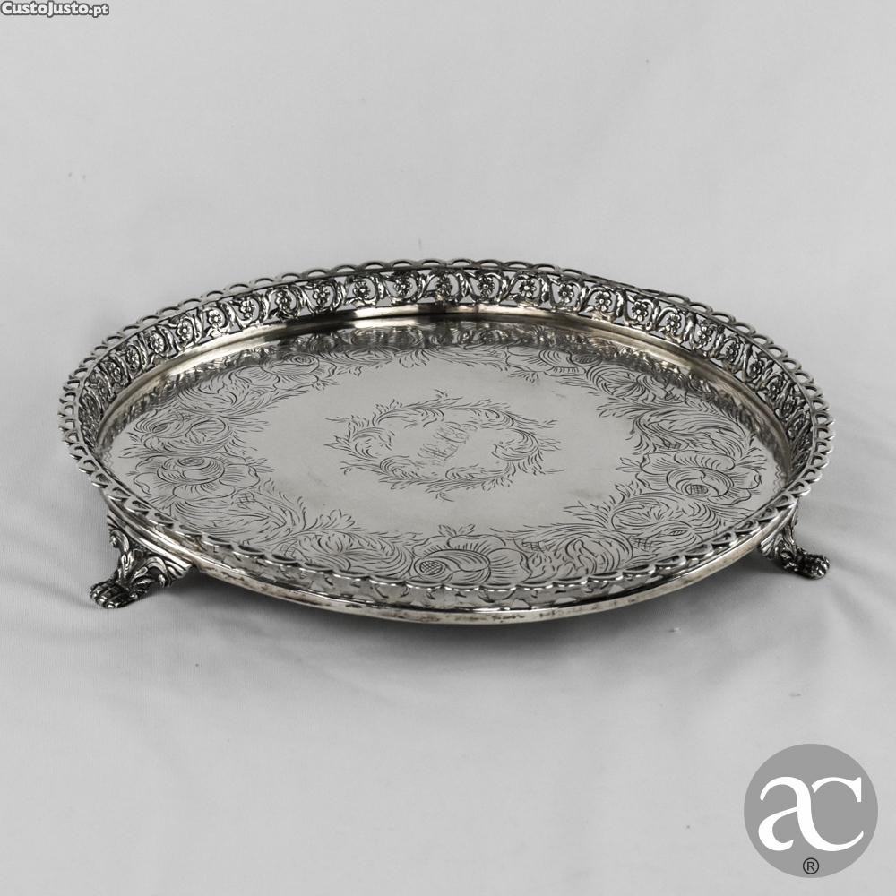 Bilheteira de gradinha com 3 pés, em prata portuguesa Porto Coroa, séc. XIX