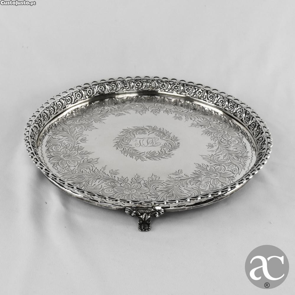 Bilheteira de gradinha com 3 pés, em prata portuguesa Porto Coroa, séc. XIX nº3