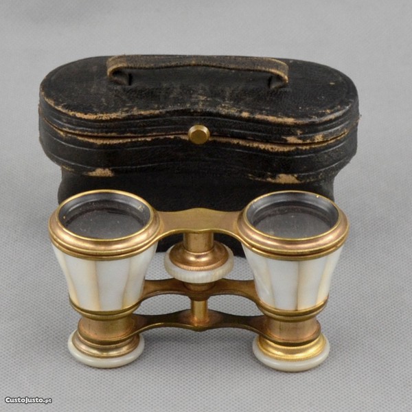 Preço: 150 €Binóculos em madrepérola e metal dourado com estojo original séc. XIX