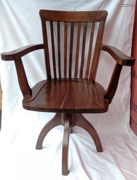 Cadeirão de escritório giratório em madeira de castanho velho.