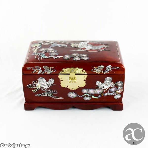 Preço: 135 €Caixa de música / guarda-joias em madeira com embutidos em madrepérola