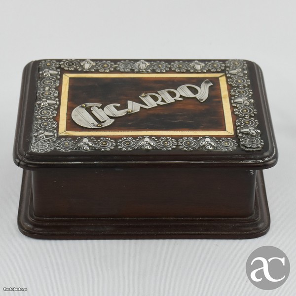 Preço: 75 €Caixa para cigarros em pau-santo e aplicações em prata Javali e osso