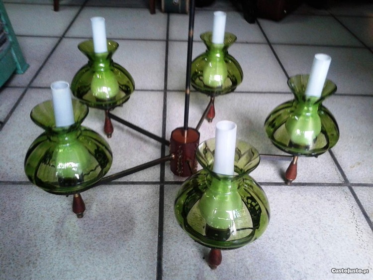 Preço: 175 €Candeeiro Tecto 5 Lâmpadas Abajures Vidro Verde