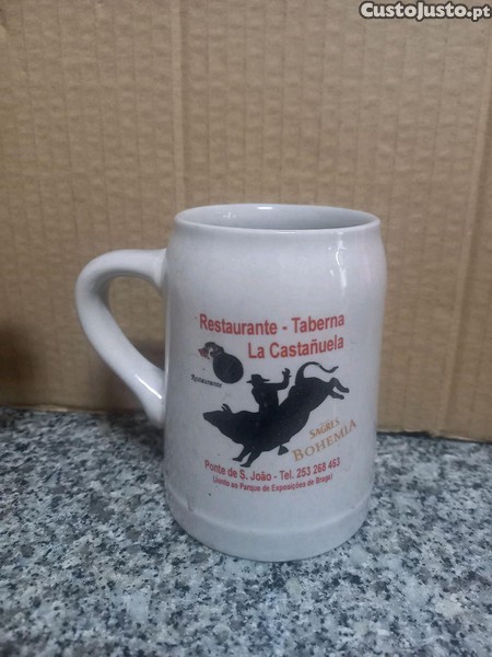 Preço: 2 €Caneca. cerveja. sagres. Bohemia. restaurante - Taberna La. Castanuela