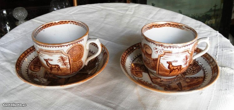 Par de chávenas com pires de Charles Allerton & Sons com motivo Reindeer Stag.