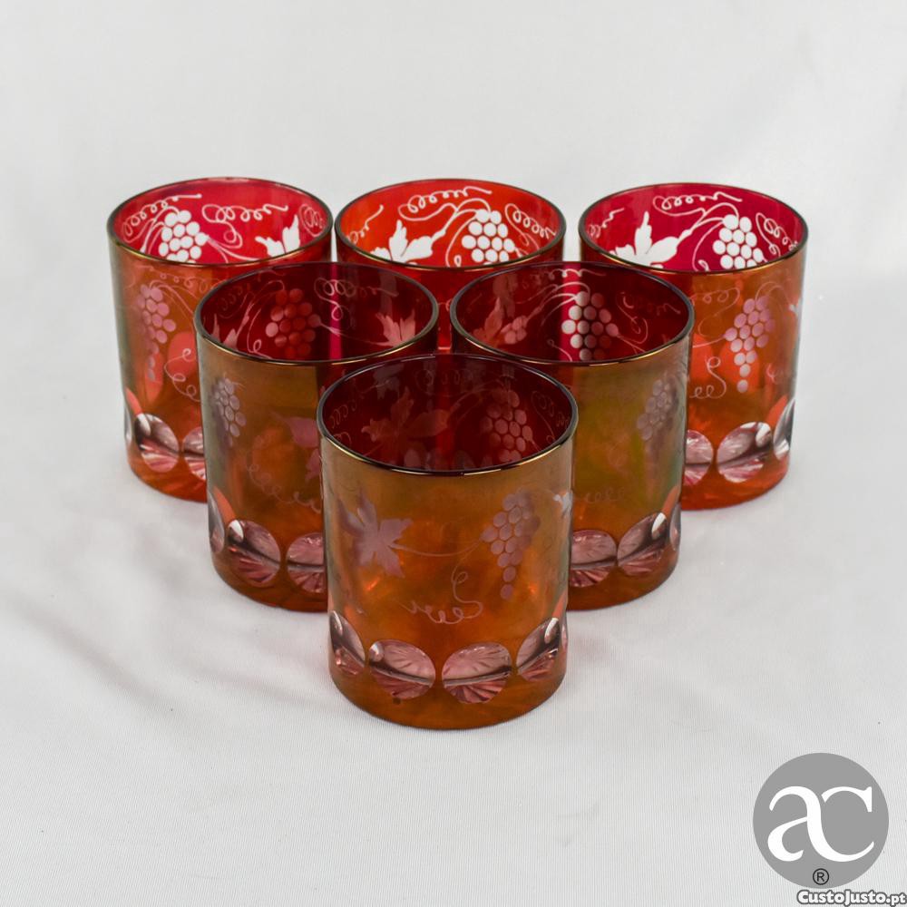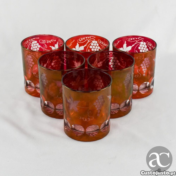 Conjunto de 6 copos em Cristal, decoração uvas e parras