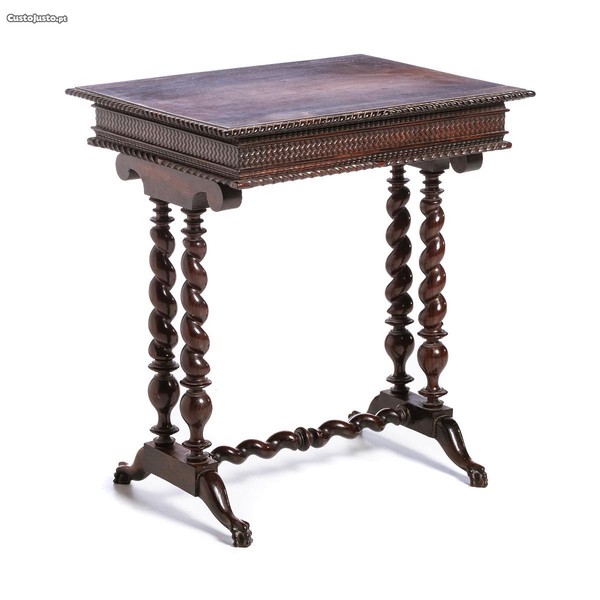 Costureira portuguesa, do século XIX em madeira de pau-santo com torcidos e tremidos.