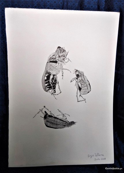Belíssimo desenho a tinta da china sobre papel assinado Roger Uttama, 2019.