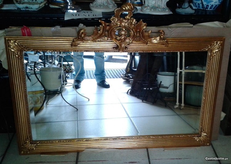 Belíssimo espelho dourado com coroa completamente restaurado.