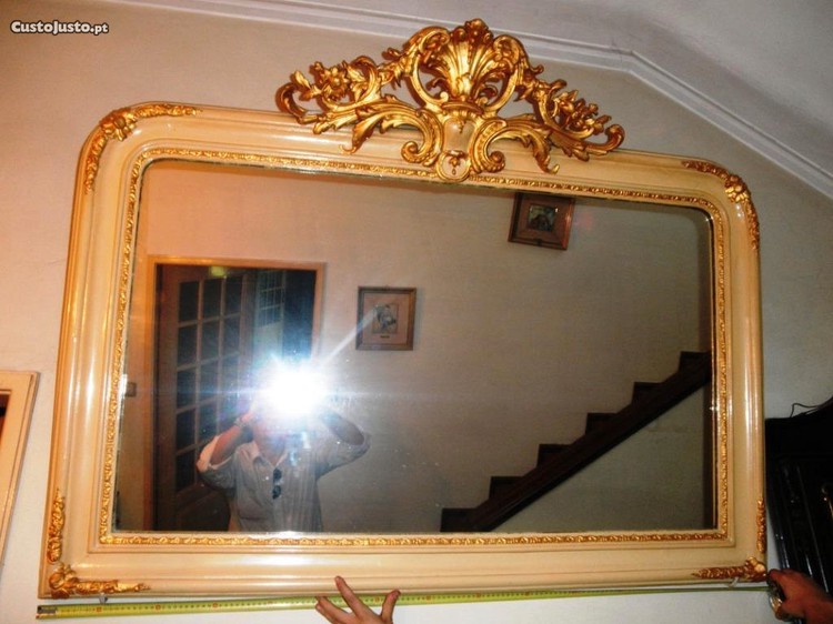 Espelho lacado em talha portuguesa com florão do séc XIX com as seguintes medidas: