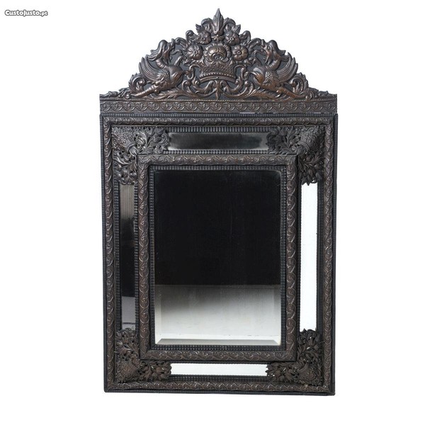 Espelho de parede flamengo do final do século XVIII, em madeira forrado a chapa repuxada
